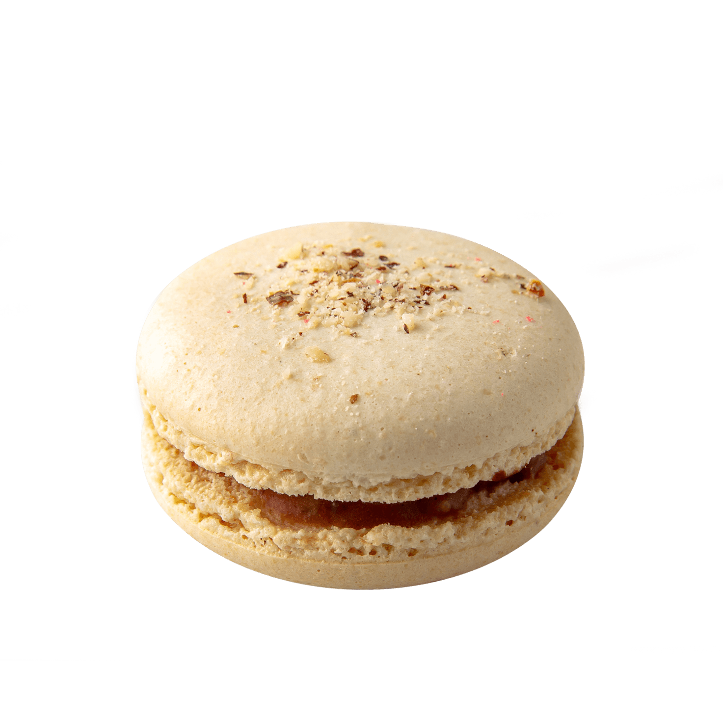 Миндальная пудра, яичный белок, сахарная пудра, сл. масло, крем из белого и черного шоколада (70%), вишнево – клюквенное пюре, коньяк, ваниль, корица